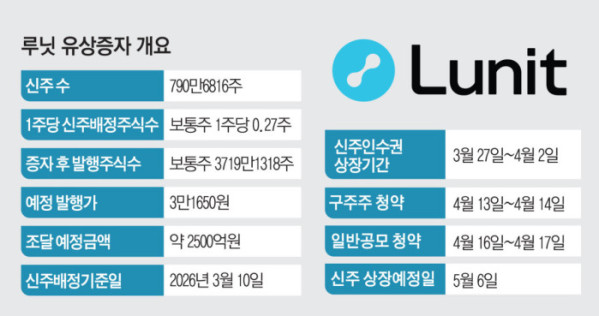 서범석 루닛 대표는 2일 서울 강남 루닛 본사에서 열린 기자간담회에서 이같이 말했다. 루닛은 지난달 30일 재무 리스크 해소와 미래 성장 기반 확보를 위해 2500억 원 규모의 주주배정 유상증자를 추진한다고 밝혔다. 신주 790만6816주를 주당 3만1650원에 발행할 예정이며 기존 주주에게는 1주당 0.27주가 배정된다. 회사는 유상증자 이후 1대 1 무상증자도 함께 추진한다.