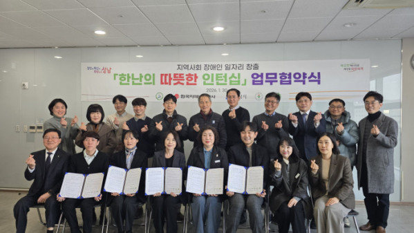 지역난방공사는 지난달 30일 성남시, 성남시 장애인직업재활시설협의회, 혜은·성은학교와 '지역사회 장애인 일자리 창출을 위한 한난의 따뜻한 인턴십' 업무협약(MOU)을 체결했다고 2일 밝혔다.