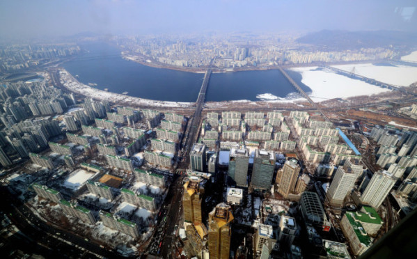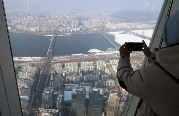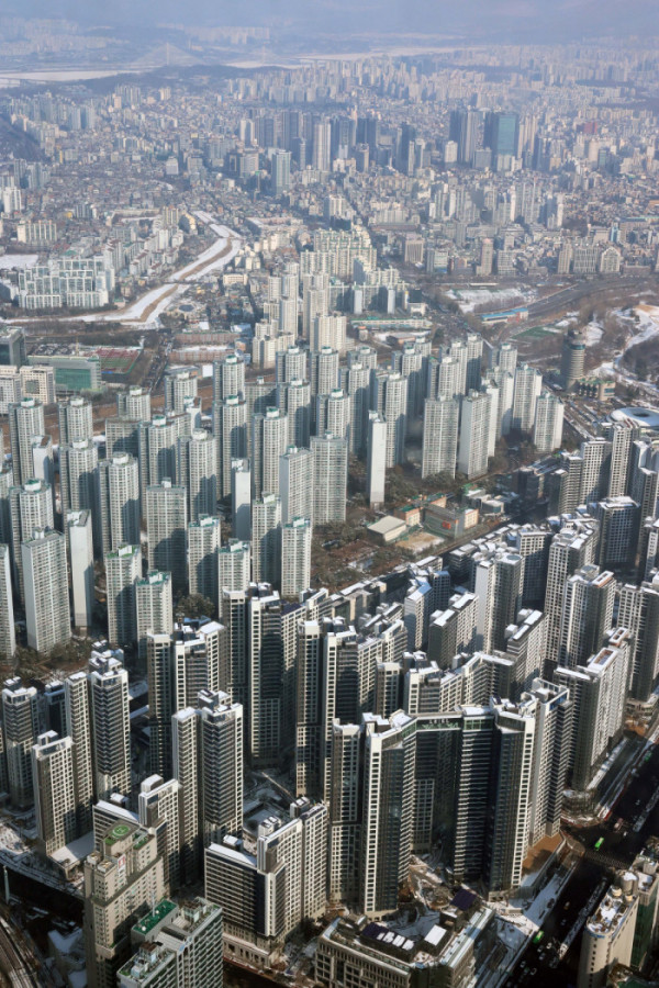 ▲지난달 한강 이남 11개구의 중소형 아파트값 평균이 18억원을 돌파한 것으로 나타났다. 2일 KB부동산 월간 주택 시계열 통계에 따르면 1월 한강 이남 11개구(강남·서초·송파·강동·양천·강서·영등포·동작·관악·구로·금천구)의 중소형(전용면적 60㎡ 초과∼85㎡ 이하) 아파트값은 평균 18억269만원으로 집계됐다. 지난해 12월(17억8561만원)보다 0.96% 상승한 것으로, 서울 중소형 면적 아파트 처음으로 18억원을 돌파했다. 지난달 한강 이북 14개구(종로·중·용산·성동·광진·동대문·중랑·성북·강북·도봉·노원·은평·서대문·마포구)의 중소형 아파트 평균가는 11억419만원으로, 작년 12월(10억9510만원)보다 0.83% 오르며 11억원을 처음으로 넘어섰다. 사진은 이날 서울 송파구 롯데월드타워에서 본 서울 시내 아파트 단지 모습. 신태현 기자 holjjak@