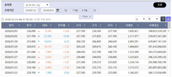 ▲급등한 국제 금값…국내 금시세는? 금값시세, 금시세, 금값 등 관심 (출처=한국거래소)
