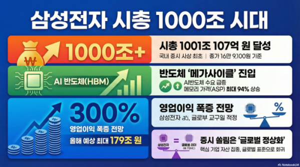 특히 인공지능(AI) 반도체 수요 급증에 따른 고대역폭메모리(HBM) 공급 본격화와 범용 메모리 업황 호조가 삼성전자의 체질 개선을 이끌었다. 시장에서는 D램과 낸드의 평균 판매 가격(ASP)이 각각 94.8%, 84.3% 급등할 것으로 추정하며 삼성전자의 독보적인 수익 구조에 주목하고 있다.