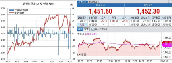 또다른 외환시장 참여자도 “개장가는 살짝 올라 시작했었다. 엔화 약세가 심해지면서 한때 1450원대 중반까지 오르기도 했다. 반면, 주식시장은 외국인 매도에도 불구하고 기관이 받치면서 상승했고, 엔화 약세에도 불구하고 달러화도 약했다. 네고 물량과 연금 물량도 나와 상단이 무거웠던 것 같다”고 말했다.