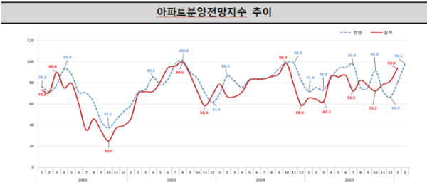 주택 분양시장에 대한 기대가 빠르게 회복되고 있다. 수도권과 비수도권 모두 분양전망지수가 큰 폭으로 오르며 시장 심리가 개선됐다. 다만 정책 변수와 공급 시차에 따른 불확실성은 여전히 남아 있다는 평가다.
