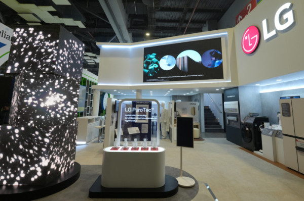 LG전자는 전시관 전면에 총 5종의 퓨로텍 라인업을 배치하고 세탁기·냉장고·에어컨·청소기·정수기 등 가전 제품을 비롯해 건축자재, 위생용품, 식품 포장재, 의료 장비 등 적용 사례를 소개했다. B2B 고객을 위한 별도 미팅 공간도 마련해 맞춤형 솔루션 상담을 진행했다.