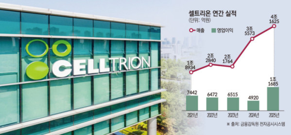 5일 금융감독원 전자공시시스템에 따르면 셀트리온은 지난해 연결기준 매출액 4조1625억원, 영업이익 1조1685억원을 기록했다. 전년 대비 각각 17.%, 137.5% 증가한 규모로 역대 최대치다. 같은 기간 영업이익률은 28.1%로 14.3%포인트(p) 늘면서 주요 과제로 꼽히던 수익성 확대에 성공했다.