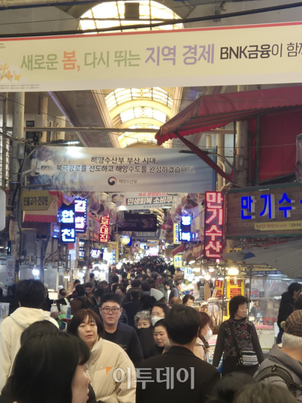 설 명절 연휴를 일주일 남짓 앞둔 6일, 부산 최대 전통시장인 부전시장은 장을 보러 나온 시민들로 하루 종일 붐볐다. 명절 대목을 맞은 시장 골목마다 활기가 넘쳤다.