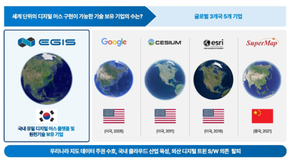 이지스는 3차원 공간정보 기반의 디지털 트윈 플랫폼 '디지털 어스(Digital Earth)'를 운영하며 '지리공간 피지컬 인공지능(GEO Physical AI)' 분야에 주력하고 있다. 현재 국내 지자체의 물 관리와 도시 인프라 분야는 물론 유럽 국책연구기관(TNO), 인도네시아 정부 등과 협력하며 글로벌 실적을 쌓고 있다.