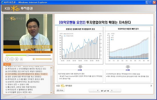 KB투자증권은 애널리스트가 직접 출연해 설명하는 동영상 보고서를 홈페이지상에서 제공해 눈길을 끌고 있다.