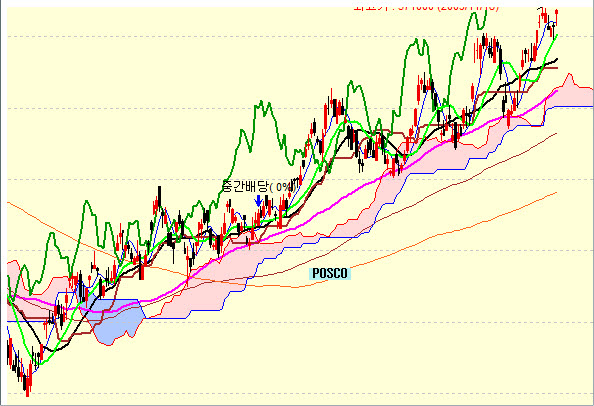 시가총액 상위주들이 혼조세를 보인 가운데, POSCO(1.97%)가 쌍끌이 매수에 힘입어 연중 최고치를 경신했고 다음달 재매각이 결정된 하이닉스(2.15%)와 삼성전자(0.94%), 현대차(0.20%), 현대모비스(1.00%), SK텔레콤(1.14%), 우리금융(0.32%), 현대중공업(2.17%), 롯데쇼핑(2.29%) 등이 지수 상승에 기여했다.