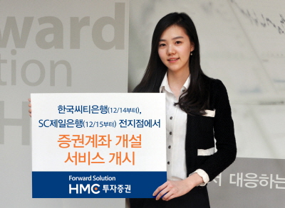 HMC투자증권는 고객 편의성 제고를 위해 한국씨티은행은 14일부터, SC제일은행은 15일부터 2개 은행 전 지점에서 계좌개설 서비스를 시행한다고 밝혔다.