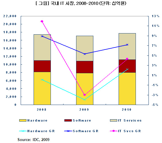 장순열 한국IDC 이사는 “IT와 통신 지출의 완만한 증가가 예상되고 있다”며 “2010년 예측은 경제 회복이 지출에 대한 압력을 어느 정도 완화시켜 IT 경기가 살아나고 동시에 시장의 진화가 얼마나 빠르게 진행될 것인가에 초점이 맞춰져 있다”고 말했다.