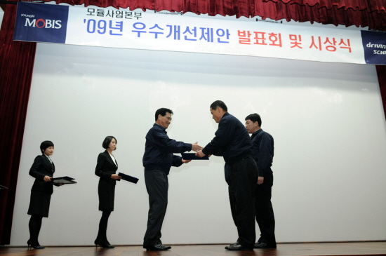 현대모비스는 이를 기념,진천공장(충북 진천군 소재) 대강당에서 정석수 사장을 비롯한 경영진과 국내공장 공장장들, 그리고 수상자 등 100여 명이 참석한 가운데, '2009년 우수제안 시상식'을 개최했다.