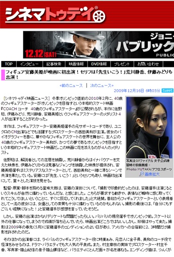 일본의 영화매거진 ‘시네마투데이’는 안도 미키가 피겨 영화 ‘COACH - 40세의 피겨스케이터’에서 피겨스케이트 선수 역으로 출연했다고 보도했다.