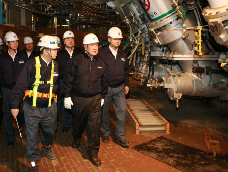 정몽구 현대ㆍ기아차그룹 정몽구 회장은 성탄을 하루 앞둔 지난 24일 현대제철 당진 일관제철소 건설현장을 방문, 내년 1월 5일 가동을 위한 카운트다운에 돌입한 제1고로를 최종 점검하고 직원들을 격려했다.