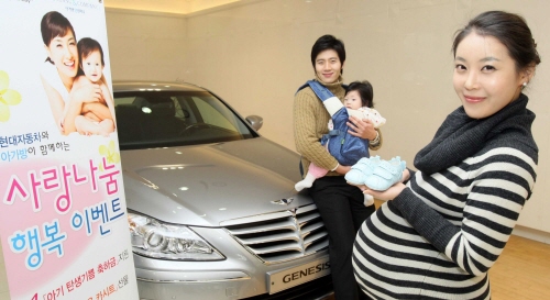 아울러 현대차는 유아용품 업체 아가방과 함께 1월부터 2월 말까지 셋째 이상의 자녀를 출산한 가정이 신차를 구입할 경우, 고급 유아용 카시트를 축하 사은품으로 증정한다.