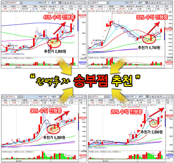 '천하무적 주식투자 카페'(http://cafe.daum.net/ikhansfighting)에서 '완벽투자'는 전환점에 바짝 다가선 종목들을 추천하고 있기에 주식초보자도 수익이 절로 날 수밖에 없는 초특급 포인트를 회원들에게 제공하고 있다.