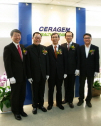 ▲좌로부터 세라젬 황순하부사장, 세라젬헬스앤뷰티 조서환대표, 세라젬그룹 이환성회장, 세라젬 강신장 대표, 세라젬 김기덕 부사장
