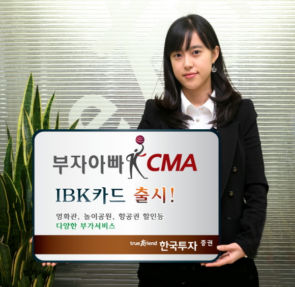 한국금융지주의 자회사인 한국투자증권은 25일부터 기업은행과 제휴해 ‘부자아빠CMA IBK카드’를 출시한다고 밝혔다.