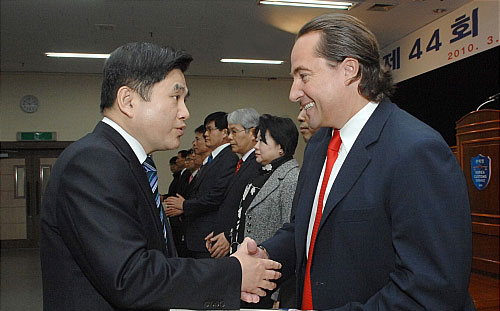 ▲스테판 리히티 BAT 코리아 사장(오른쪽)이 김도열 인천세관 본부장(왼쪽)으로부터 기획재정부 장관 표창을 받고 있다.(뉴시스)