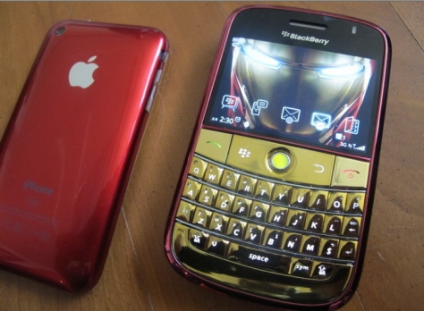 구준엽은 지난 19일 자신의 블로그에 "드디어 아이폰도 페이스 오프시켰다"라는 글과 함께 블랙베리의 본체 뒷부분을 떼어내 아이폰의 뒷면으로 테두리는 금색으로 교체한 사진을 올렸다.