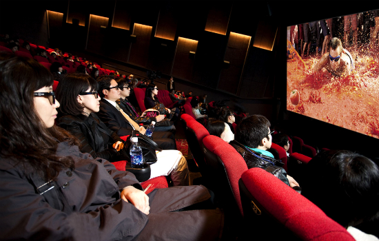 ▲서울 롯데시네마 건대점을 찾은 관람객들이 삼성파브 풀HD 3D LED TV의 런칭 광고인 '토마토'편을 3D 극장 화면을 통해편안한고 생생한 입체감을 감상하고 있다.