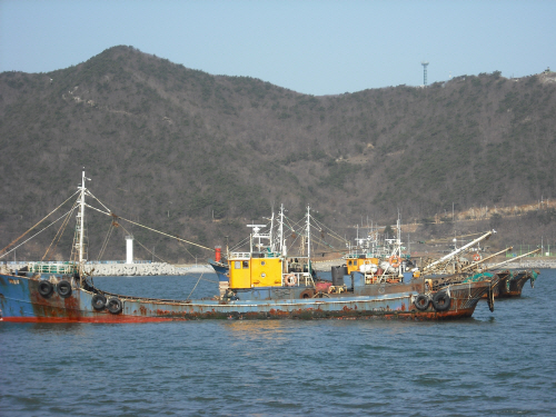 천안함 실종자 수색 작업에 참여하기 위해 대청도 선진포로 입항한 쌍끌이 저인망 어선들.