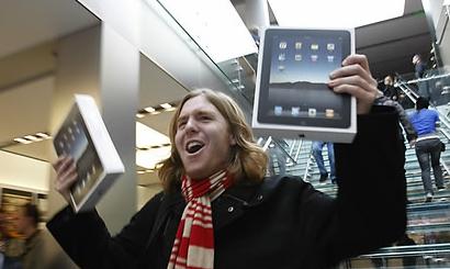 역시 아이패드였다. 밤샘을 하며 기다린 애플 마니아들의 손에는 애플 태블릿 PC '아이패드'가 들려있었다. 그들은 환호했다.