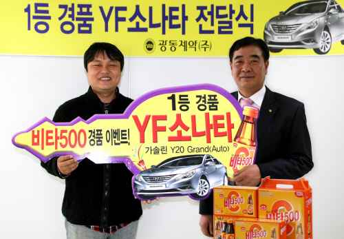 경품의 주인공이 된 강종원씨는 "현재 사용하고 있는 자가용이 8년 넘게 건설현장을 오가다 보니 노후화가 심해 새 차 구입을 고민하고 있었는데 선물로 받은 비타500에서 이런 큰 행운이 올 지는 꿈에도 몰랐다"며 기쁨을 감추지 못했다.