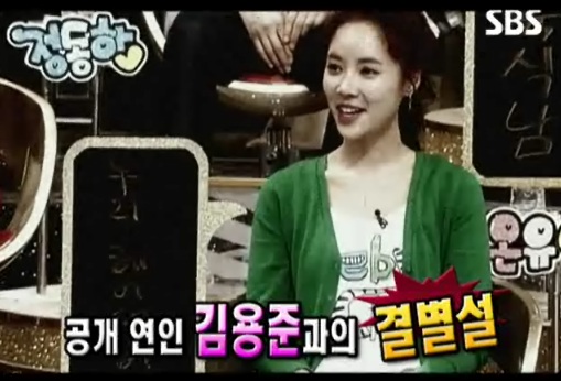 그녀는 이날 방송분에서 김용준과 이별 후 다시 재결합하게 된 사연과 한 남자배우와의 스캔들 때문에 힘들었던 심경 등을 털어놨다.