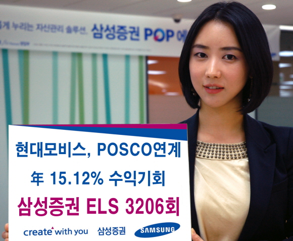 삼성증권은 현대모비스와 POSCO를 기초자산으로 3년의 투자기간동안 두 종목 모두 40% 이상 하락한 적이 없으면 연 15.12%의 수익을 지급하는 ‘삼성증권 ELS 3206회’를 14, 15 양일간 판매한다고 밝혔다.
