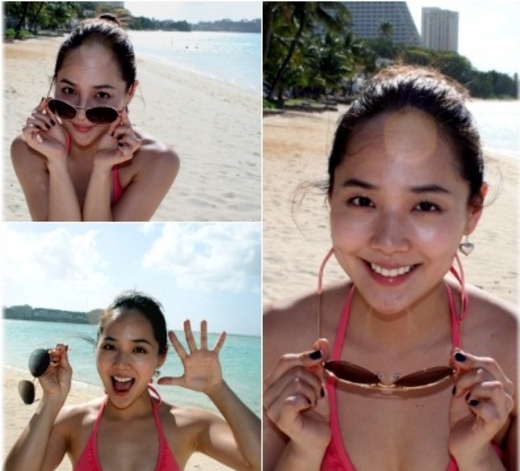 유진은 지난 7일 자신의 미니홈피에 '비치'(Beach)라는 제목으로 해변에서 비키니 수영복을 입고 찍은 사진을 게재했다.