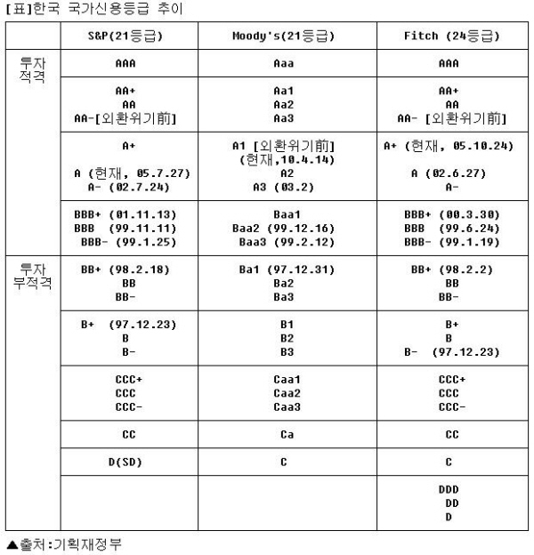 [표]한국 국가신용등급 추이