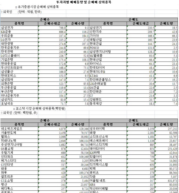 종목별로 삼성전자(798억원), KB금융(666억원), 우리금융(337억원), LG전자(335억원), 대한생명(274억원)등이 순으로 순매수했다.