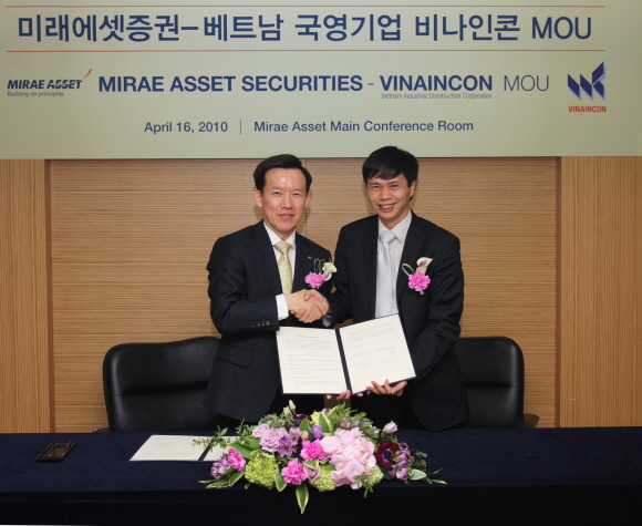 미래에셋증권은 16일 오후 여의도 미래에셋증권 본사 대회의실에서 베트남 국영 건설사인 비나인콘(VINAINCON)과 IPO주관업무를 위한 MOU를 체결했다고 밝혔다.