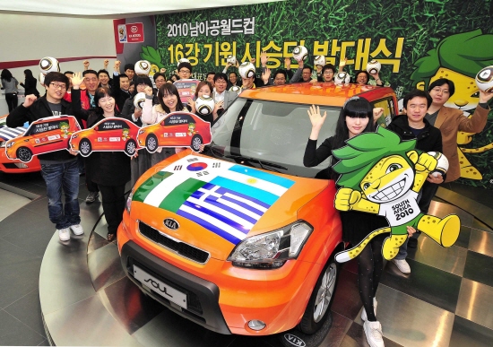 기아자동차가 남아공월드컵 16강을 기원하는 '월드컵 16강 기원 시승단'을 운영한다.