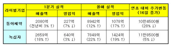 제약업계 라이벌 기업인 동아제약과 녹십자가 올해에도 시장 상황을 반영하며 경쟁구도를 지속시킬 전망이다.