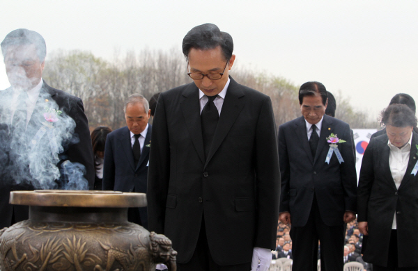 이 대통령은 이날 기념사에서 "오늘날 우리 정치는 좁고 추상화된 이념에 사로잡혀 서민의 절박한 삶과 국가의 어려운 현실을 외면하고 있는 것은 아닌지 거듭 생각해 본다"며 "분열을 조장하는 지역주의와 인기에 영합한 포퓰리즘의 정치에 기대는 것은 아닌지 다시 한 번 반성해야 한다"고 말했다.
