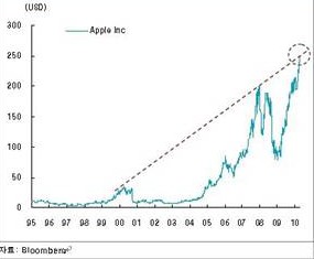 지난해부터 전 세계적인 광풍을 일으켰던 애플의 주가가 단기 고점에 위치해 조정 국면에 들어갈 가능성이 제기되면서 미 증시의 조정 가능성이 대두되고 있기 때문이다.