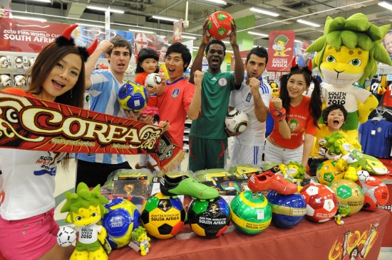 이에 따라 홈플러스는 22일부터 전국 115개 점포에서 월드컵 공식 라이선스 상품을 판매하고 다양한 이벤트를 전개하기로 했다. 판매상품은 '월드컵 엠블렘'과 남아공 월드컵 마스코트 '자쿠미', 'FIFA컵'등 FIFA 공식마크가 활용된 서포터즈 티셔츠는 물론 공식 축구공 자블라니등이 판매된다.