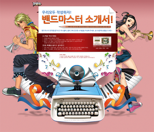 이날 22일부터 5월6일까지 2주간 진행되는 이번 이벤트는 밴드마스터를 즐기고 난 후 직접 게임을 소개하는 리뷰를 글이나 동영상, 스크린샷 등을 활용해 자유로운 형식으로 작성하면 된다.