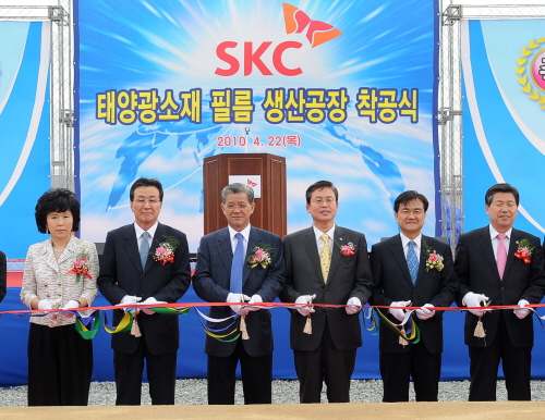 한편 이날 착공식에는 SKC 최신원 회장, 박장석 사장과 정우택 충북도지사, 정범구 국회의원, 유영훈 진천군수 등 내외빈 200여명이 참석했다.