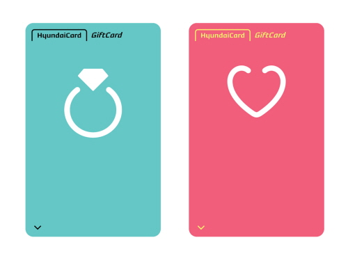 이번 기프트카드의 컨셉은 '반지'와 '하트'다. 반지 기프트카드는 민트 바탕에 다이아몬드 반지를 새겨 넣었고, 하트 카드는 분홍색 바탕에 하트를 디자인했다.