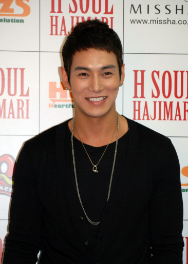 가수 환희가 첫 번째 공식 팬클럽 창단을 기념해 지난 27일 일본 도쿄의 나가노 선프라자홀에서 열린 팬미팅 'H SOUL 하지마리(시작)'에 앞서 포즈를 취하고 있다.