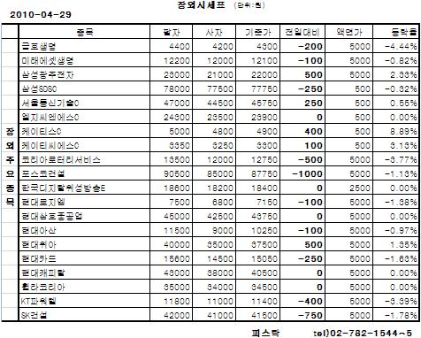 생보사주에서는 금호생명이 이틀연속 하락하며 4300원을 기록했다. 미래에셋생명도 전일보다 100원 떨어진 1만2100원으로 장을 마쳤고 삼성생명은 13만2500원에서 움직임 없었다.