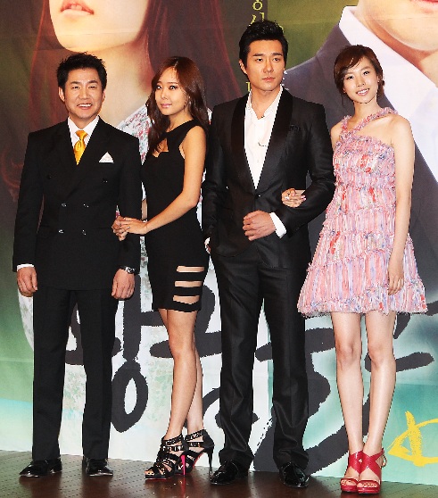 MBC 새 일일 드라마 '황금물고기' 제작발표회가 29일 오후 서울 여의도 CCMM빌딩에서 열렸다. 이 자리에 참석한 배우 박상원, 소유진, 이태곤, 조윤희(왼쪽부터)가 포즈를 취하고 있다. 특히 소유진은 이 작품으로 3년 만에 시청자들의 안방을 찾는다.