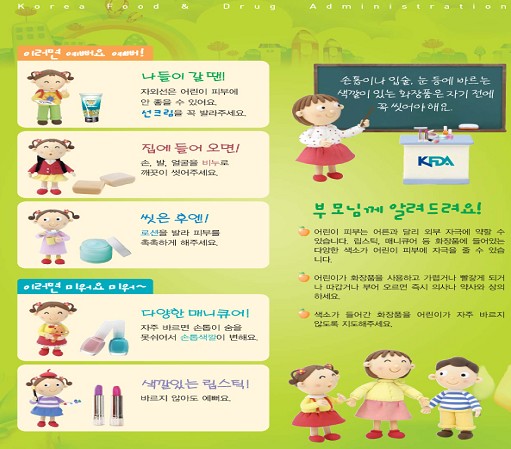 식약청은 어린이를 둔 부모 등 보호자들은 어린이용으로 허가된 화장품만을 구입하고 사용상 주의사항을 담고 있는 홍보자료를 충분히 숙지해 줄 것을 당부했다.