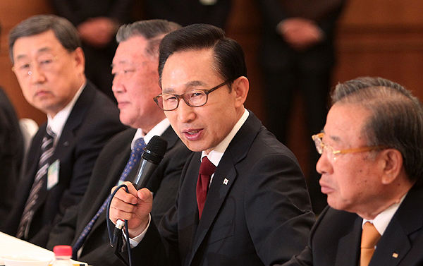 중국 상하이(上海)를 방문한 이명박 대통령이 30일 리츠 칼튼 호텔에서 열린 경제인 오찬에서 인사말을 하고 있다