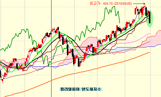 오른만큼이나 밸류에이션 부담이 목에 찬데다 필라델피아 반도체지수가 20일선을 이탈하면서 IT주들의 투자심리를 위축시킬 수 있는 상황이다.