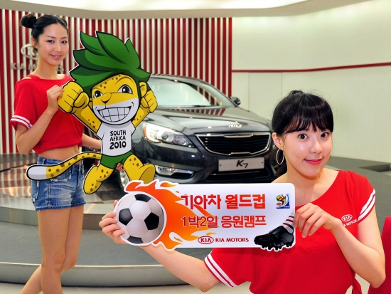 기아차㈜는 5월 기아차 출고 고객을 대상으로 6월12일~13일까지 1박2일 동안 서울 상암동 노을공원에서 국가 대표팀의 승리를 응원할 캠프 참가 가족을 선발하는 '2010 남아공 월드컵 1박 2일 응원캠프 이벤트'를 진행한다.