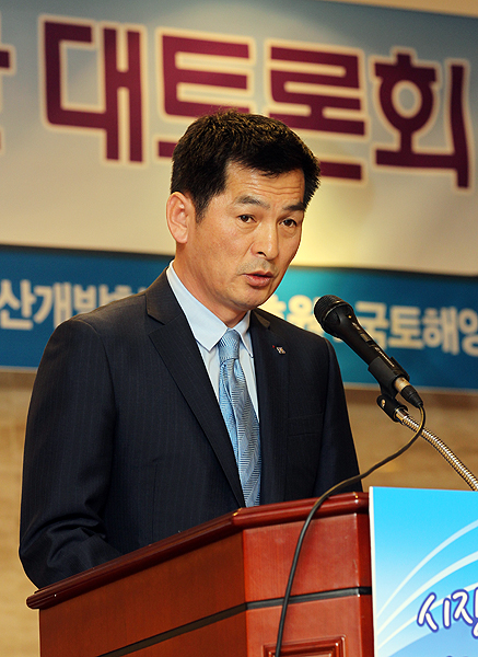 정춘보 한국부동산개발협회 회장이 11일 오후 논현동 건설회관에서 열린 '부동산개발 핵심쟁점에 대한 대토론회'에서 개회사를 하고 있다.